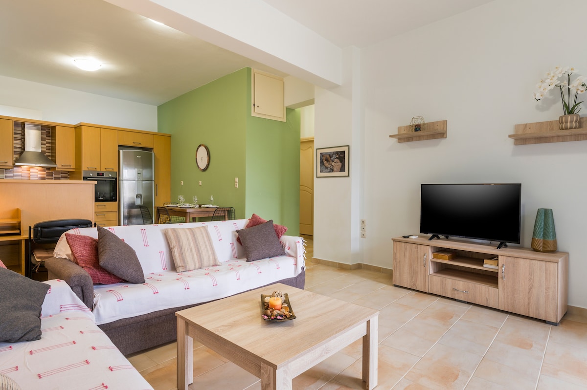 Bienvenue à Kyanon House and Apartment, un appartement pittoresque et luxueux de 2 chambres et 2 salles de bain avec piscine privée à débordement et hydromassage et vue imprenable sur la mer de Crète et la ville de La Canée. À seulement quelques minutes du centre-ville et des plages de la région. Les voyageurs de tous horizons sont les bienvenus, cet appartement est idéal pour les couples et les familles toute l'année qui souhaitent passer des vacances dans un confort luxueux et une intimité.