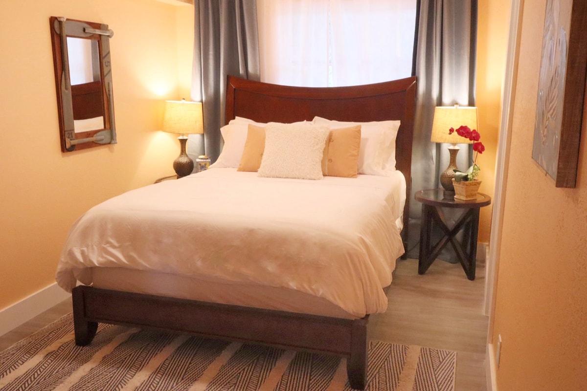 Bienvenue dans votre retraite en bord de mer à Pompano Beach, à seulement 1 mile de la plage. Ce studio confortable dispose d'un lit Queen Size, d'une salle de bain rénovée et d'une kitchenette. Profitez d'une télévision intelligente, d'une connexion Internet rapide et de la climatisation ou détendez-vous sur le patio privé pour faire des grillades, bronzer ou vous prélasser. À proximité, découvrez les restaurants locaux, les sports nautiques et le golf. Avec une allée privée, un abri voiture couvert (prise Nema pour recharger les véhicules électriques) et un espace pour 3 voitures, ce studio est votre base idéale pour explorer le charme côtier du sud de la Floride.