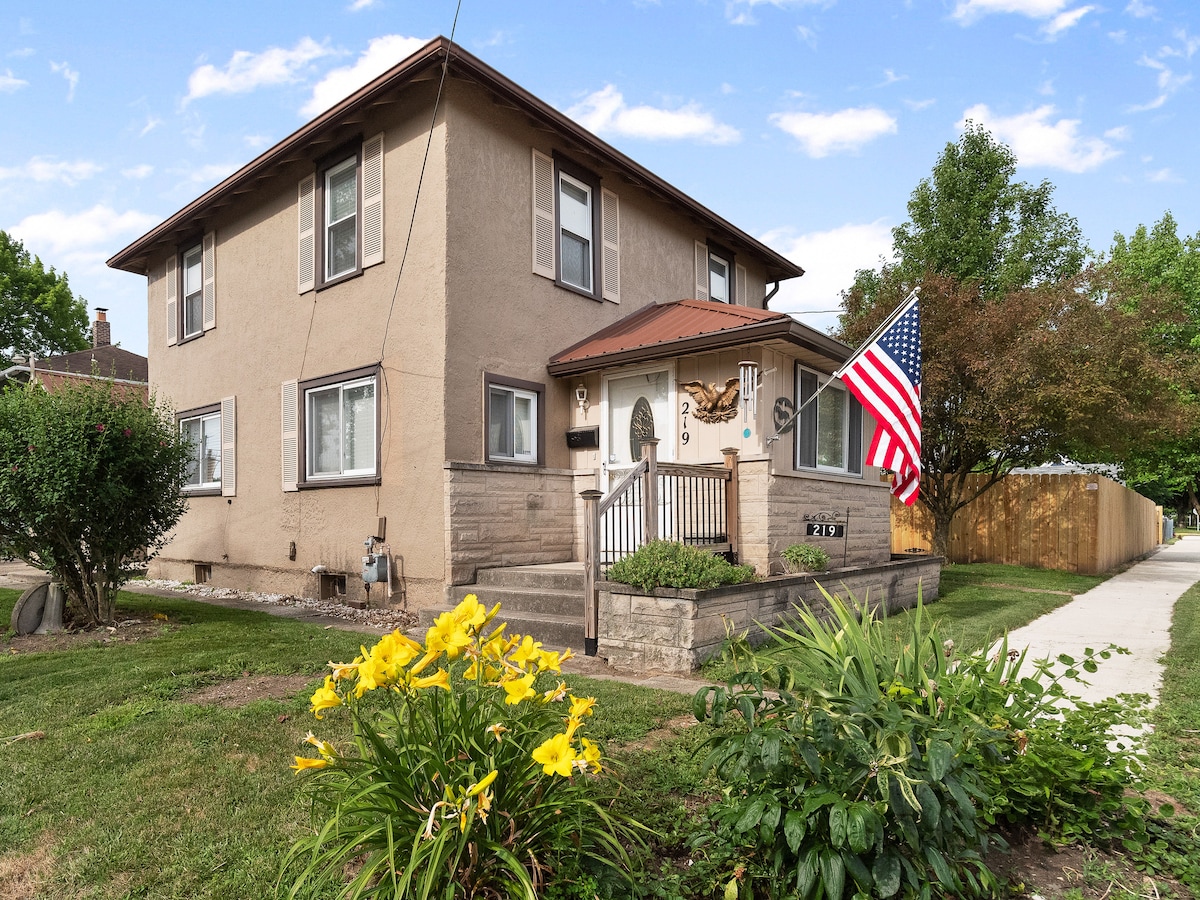 Cette maison pittoresque, moderne et propre est confortable et calme. Nous voulons attirer des locataires calmes et paisibles qui veulent une maison moderne et bien équipée pour profiter d'un séjour, où vous pouvez également cuisiner et vous garer dans un garage, contrairement à une chambre d'hôtel. Le quartier apprécie uniquement les locataires calmes qui respectent l'ambiance du quartier. Si vous visitez Auburn pour un événement familial, sportif ou universitaire dans la région de Fort Wayne, la vente aux enchères de voitures ou le musée d'Auburn, cette maison est faite pour vous.
