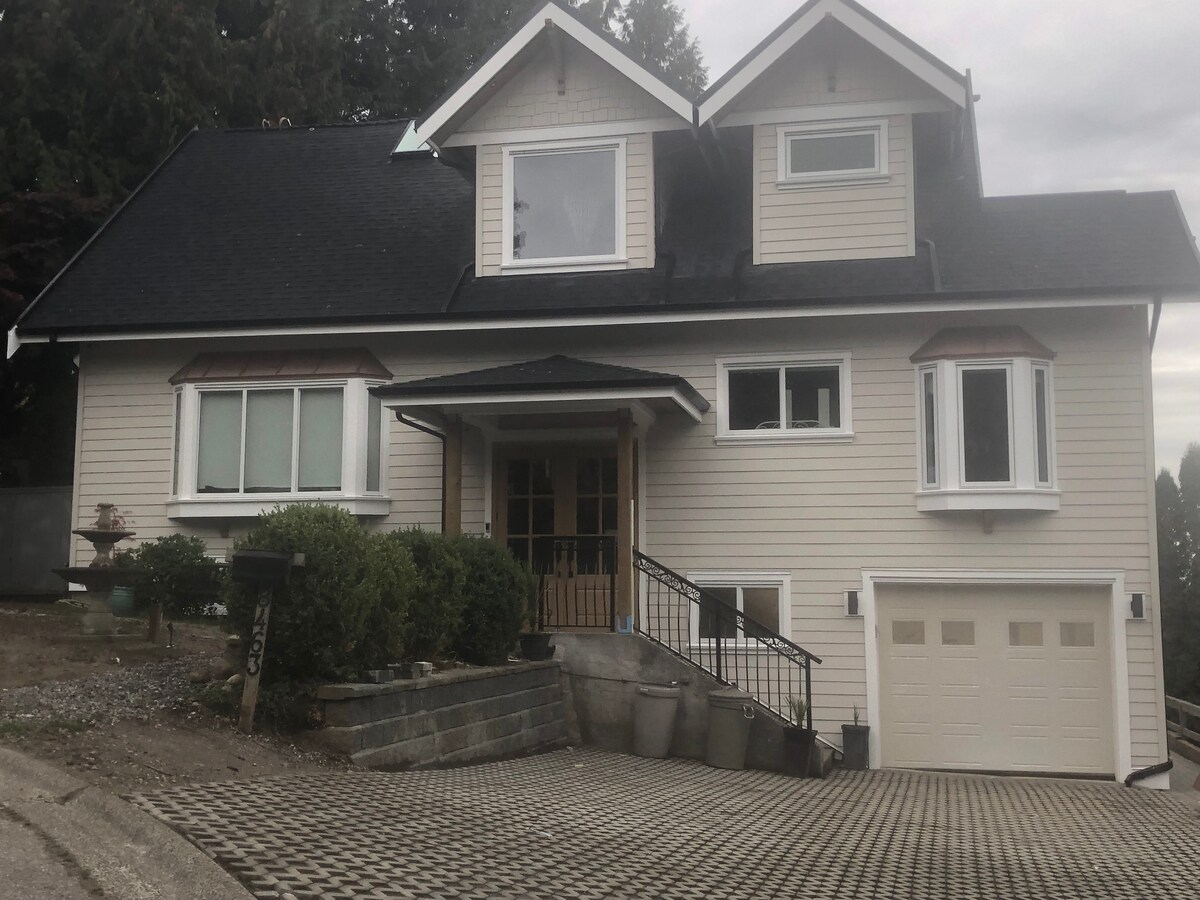Appartement spacieux et privé de 1500 pieds carrés 3 chambres/1,5 salle de bain au premier étage, donnant sur la belle réserve naturelle du Delta. Il y a une grande cuisine entièrement équipée. Dans le salon séparé, il y a un bureau et des fenêtres qui offrent une vue sur la forêt. 20 minutes de l'aéroport. Accès facile à l'autoroute 91 vers le nord jusqu'à Vancouver et vers le sud jusqu'à White Rock et la frontière américaine. Situé au centre du GVRD. Il s'agit d'une maison familiale et les hôtes vivent à l'étage. Il ne convient pas aux fêtes.