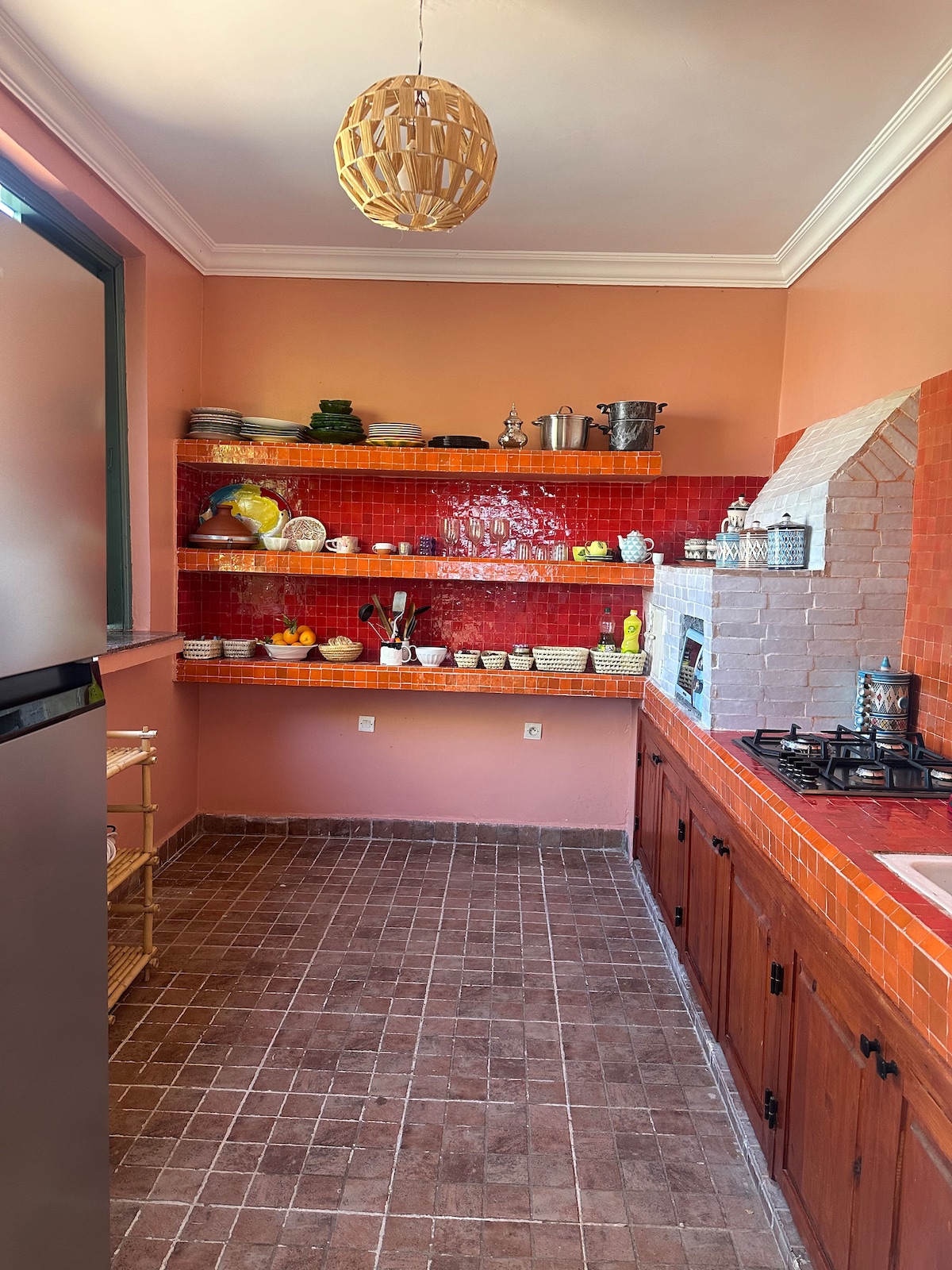 Grande maison avec Piscine, pour se retrouver en famille ou entre amis, jusqu’à 7 personnes. En toute tranquillité. Gardiens sur place à votre disposition . Il y a 3 chambres et 3 salles de bain , une cuisine , un grand espace salon intérieur avec une grande cheminée et un grand espace repas l hiver . Espace repas également dans le jardin l été . Une grande terrasse panoramique d où l on peut voir la chaîne de l atlas et le coucher de soleil .