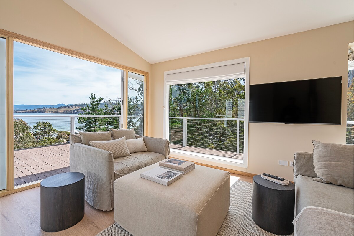 Bruny Beach House est situé au nord de Bruny Island, à Dennes Point, et se trouve à seulement 40 mètres de la marée haute sur la longue et belle plage du Nebraska avec une vue spectaculaire à 180 degrés sur le canal D'Entrecasteaux. Des espaces de vie ensoleillés avec une vue imprenable sur la montagne et la mer depuis toutes les chambres. BBH est un endroit pour réapprovisionner votre âme et laisser le monde derrière vous. Lits et suites lounge confortables, cuisine entièrement équipée et plus encore !