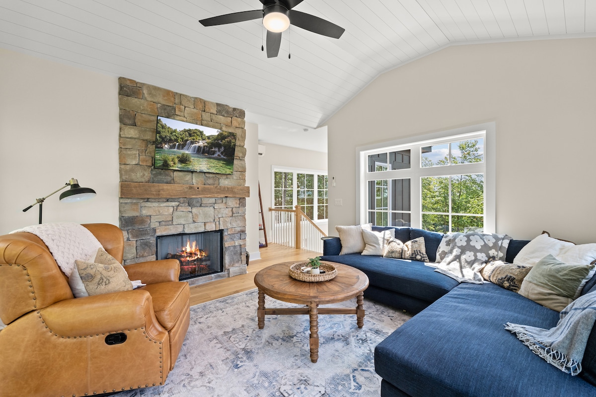 Profitez de la vue sur le lac et les montagnes dans cette oasis rénovée au milieu des arbres. Que vous soyez à la recherche d'une aventure en plein air ou d'une escapade revigorante, nous avons tout ce qu'il vous faut ! Situé sur un lac de cinq acres, profitez du quai privé et de l'utilisation de nos deux planches à pagaie et de notre canoë. Après une journée de randonnée, décompressez dans le jacuzzi et le sauna. Des tonnes d'espace pour se réunir à l'intérieur comme à l'extérieur, nous espérons que vous apprécierez tous les équipements modernes tout en vous reconnectant avec la nature. À seulement 12 minutes du centre-ville d'Ellijay !