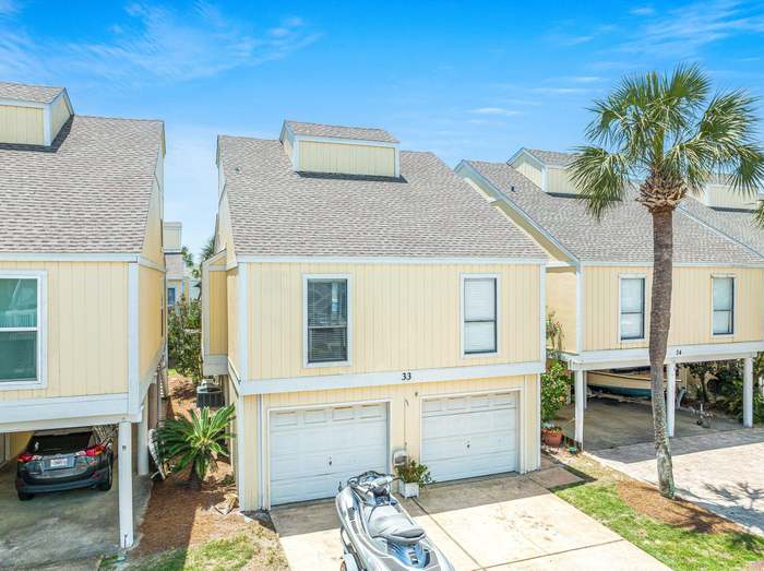 Une cabane sur la mer - c'est exactement où vous voulez être! Cette pittoresque communauté résidentielle est nichée à côté de Scenic Gulf Drive, au milieu de tours de gratte-ciel, dans le quartier prestigieux de Miramar Beach. Les chalets de mer lui donnent l'impression d'être à la maison dans le glorieux golfe et avec sa couleur bleue turquoise et ses garnitures blanches assorties sur un terrain tropical plutôt qu'à l'hôtel ou en copropriété. Cette maison de ville, l'unité 8B, est un monde privé à part.