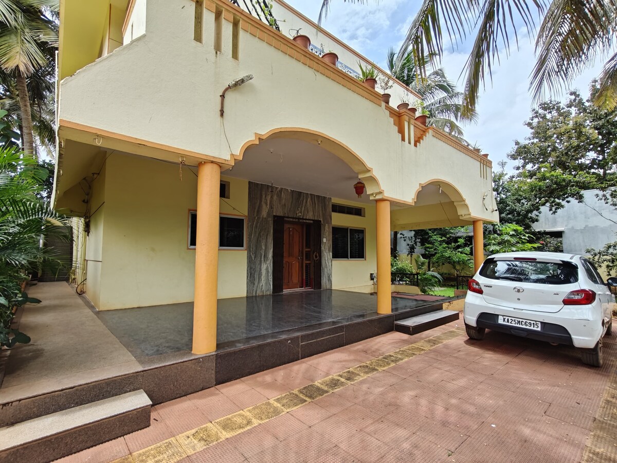 Cette ferme privée de 3 BHK est située à 2 minutes de la Pune-Bangalore National Highway-48 entre Kittur et Dharwad. C'est un paradis absolu pour les voyageurs ayant besoin d'une pause voyage, pour des vacances en famille, pour le plaisir de la nature ou R&R. La propriété dispose d'un immense jardin devant avec beaucoup d'arbres fruitiers et de plantes, dispose d'un hall spacieux, d'une cuisine bien équipée, d'une immense salle de réunion et 3 belles chambres avec salles de bains attenantes. Pour couronner le tout, une terrasse sur le toit pour profiter des couchers de soleil ajoute au charme ! !