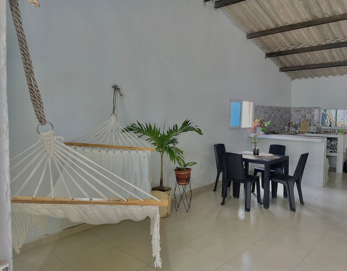 Venez vous reposer dans l’une des 5 maisons confortables privées situées dans le centre de Palomino. La plage est à 800 mètres, et la rivière Palomino et la Sierra Nevada à 10 minutes à pied. Les restaurants et les boutiques sont à moins de 5 minutes à pied. Les maisons ont une entrée dans une ruelle privée et leur propre jardin fleuri. Les deux chambres sont meublées avec un lit queen size. 2 piscines à partager. Confort et élégance.. RNT 108253