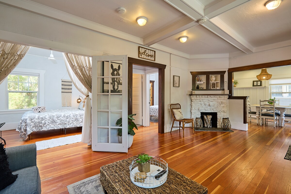Niché parmi les séquoias majestueux de Monte Rio, le Cottage C est une escapade paisible et conçue avec soin, parfaite pour les amateurs de détente et de nature. Cette charmante escapade dispose d'un jacuzzi privé sous les arbres, d'un poêle à bois confortable et d'un intérieur magnifiquement conçu avec tout ce dont vous avez besoin pour un séjour revigorant. Une fois à l'intérieur de la cour fermée, vous aurez l'impression d'être dans un monde à part, entouré de séquoias et des sons apaisants d'un ruisseau saisonnier.
