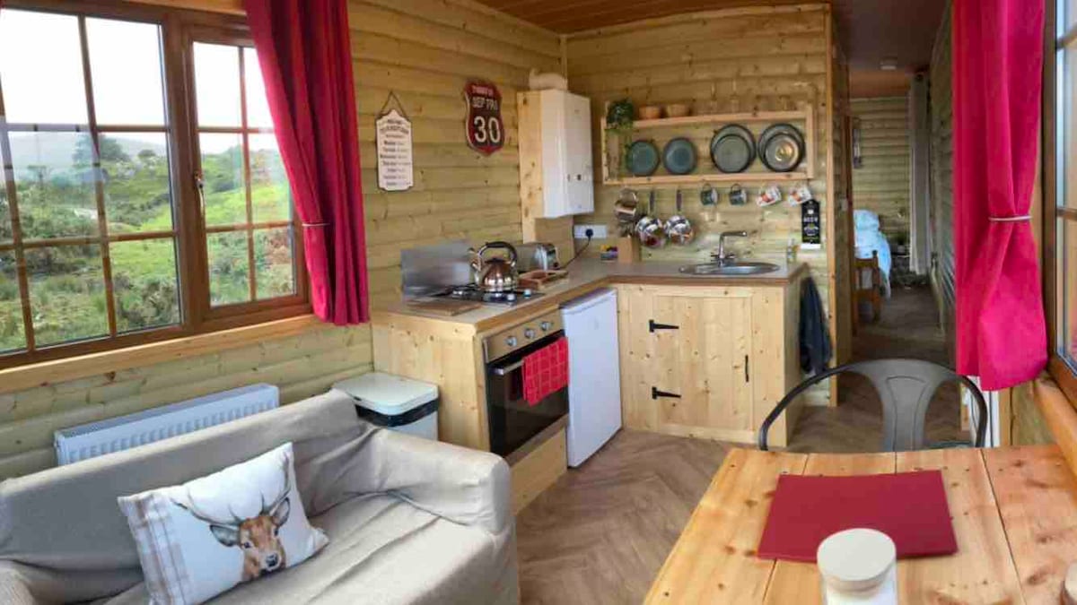 Évadez-vous dans cette petite maison unique, bénie par une vue imprenable sur la montagne et à quelques minutes de belles plages. Cet endroit romantique est parfait pour se détendre devant le poêle à bois avec un verre de vin, se prélasser dans le jacuzzi tout en regardant les étoiles ou simplement respirer l'air frais de Donegal tout en lisant un livre.