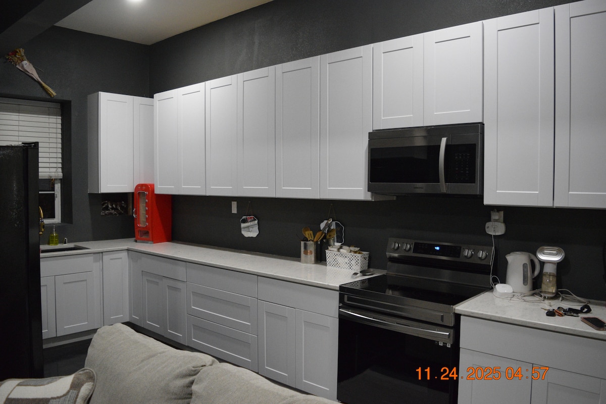 Bienvenue dans notre paisible retraite au bord du lac, nichée au bord d'un lac serein. Cet espace charmant offre le mélange parfait de confort moderne et de beauté naturelle. Emportez de la lumière et détendez-vous dans votre toute nouvelle micro-maison ensoleillée. Confortable et minimaliste, mais entièrement équipé avec tout le nécessaire, y compris une entrée privée, une connexion Wi-Fi, une terrasse, un foyer extérieur, une salle de bain, un lave-linge/sèche-linge, une kitchenette et un mini-réfrigérateur.