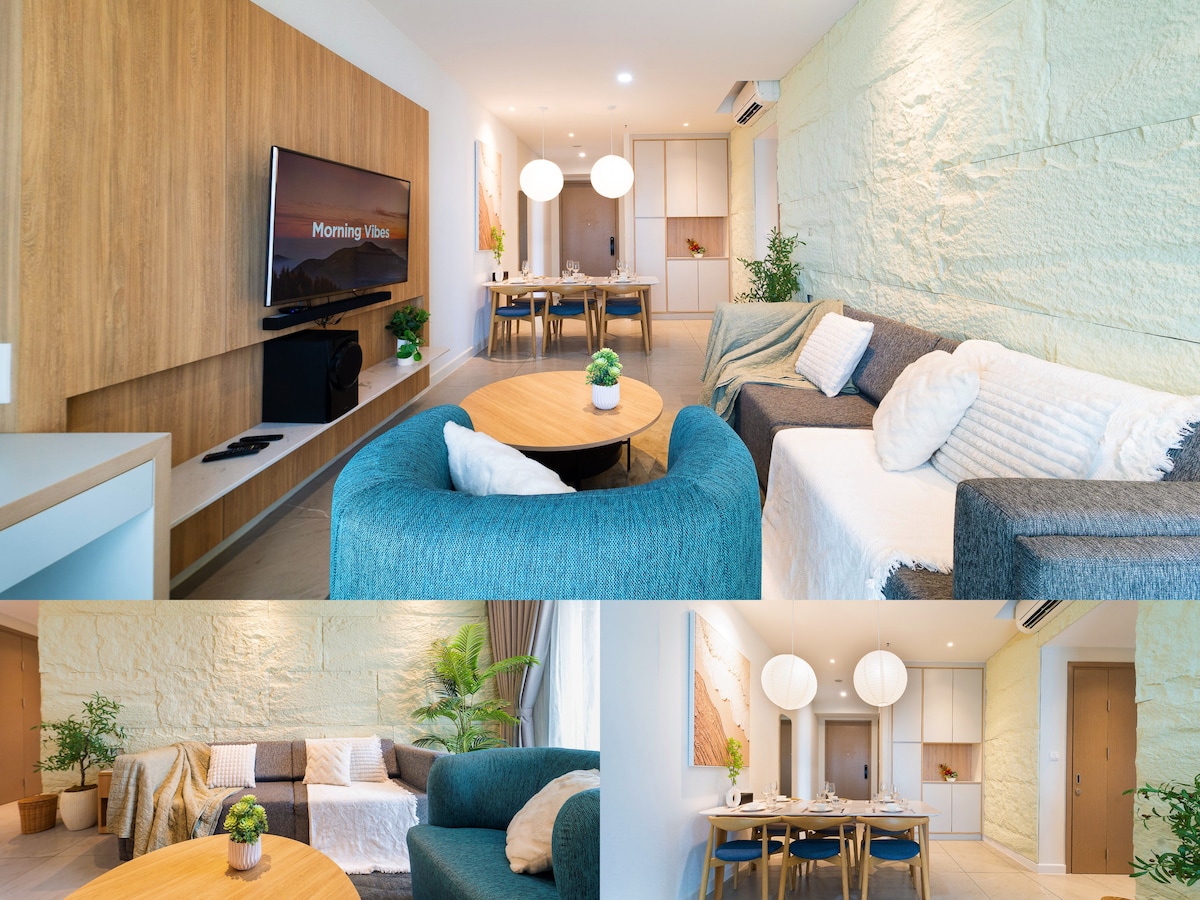 L'appartement est magnifiquement conçu dans le style Wabi Sabi situé dans la haute fréquence du bâtiment central ZENITY CAPITALAND District 1, style artistique, installations de villégiature piscine_bain spa_salle de sport_salle de réunion, salle de travail privée, espace barbecue dans le jardin, espace de jeu pour les enfants, grand salon climatisé wifi au niveau de l'intestin, toutes les fenêtres et le balcon de la chambre ont une vue panoramique sur toute la ville. Un appartement unique, luxueux et élégant