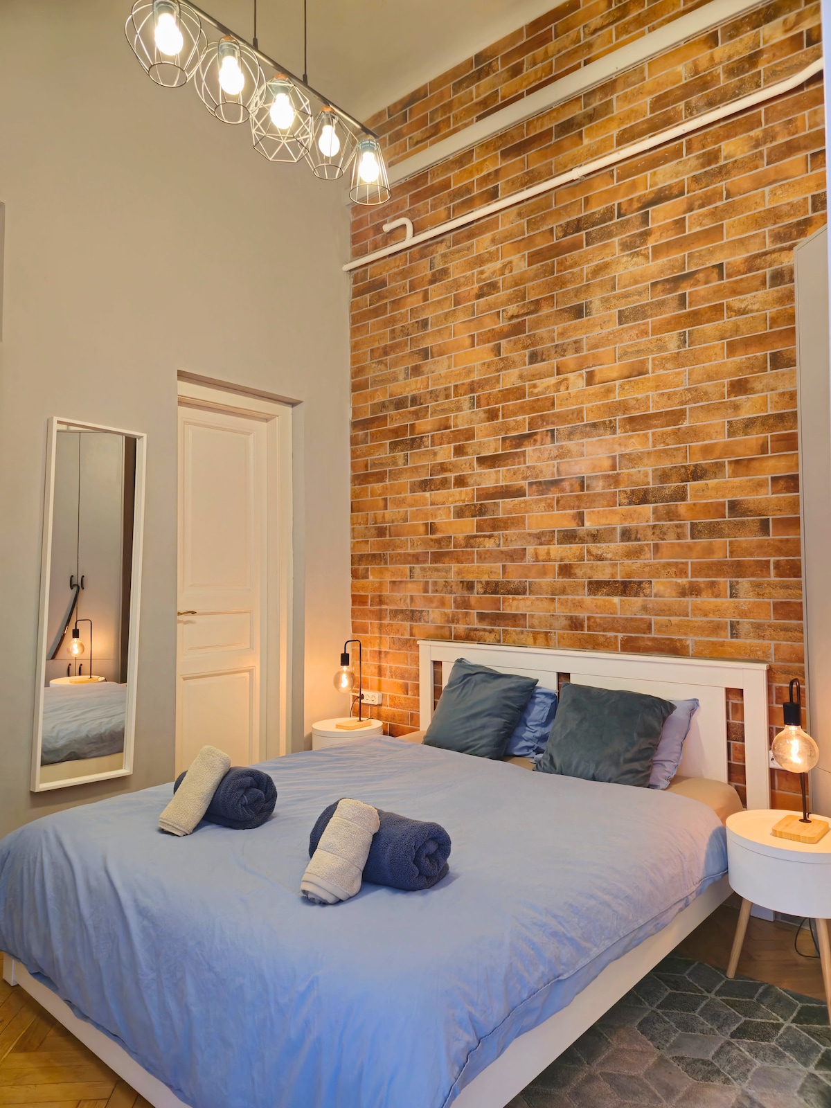 Situé au cœur de Budapest et pourtant donnant sur une cour calme. Tous les sites importants de la ville sont à quelques minutes à pied. Les lieux de divertissement, les bars et les restaurants rehaussent l'atmosphère. Les transports en commun sont très proches. Des normes élevées, une esthétique harmonieuse et un confort de qualité pour 4 personnes. Nos invités peuvent également séjourner avec des bébés. Nous sommes des Superhosts avec de l'expérience en matière d'hospitalité. Nous vous accueillons avec amour et attention, avec champagne et eau minérale.