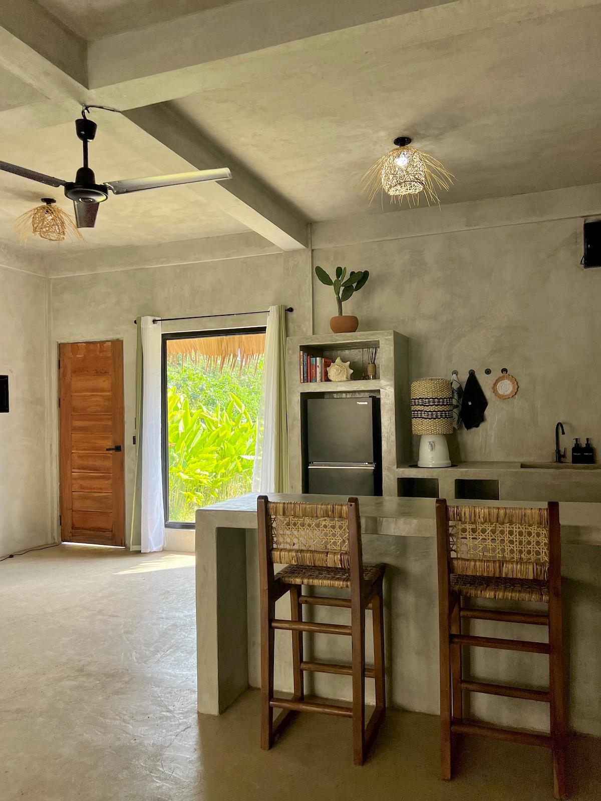 Welcome to your blissful retreat in El Nido, Ananda House. Each house offers a blend of indoor and outdoor living. Inside, you’ll find an open-plan living room and fully-equipped kitchen, an air-conditioned bedroom with a king-sized bed and blackout curtains, and an ensuite bathroom with an indoor garden. Step outside to your own private plunge pool, surrounded by lush greenery. Our houses are solar-powered, a thoughtful feature given the island’s frequent power outages.