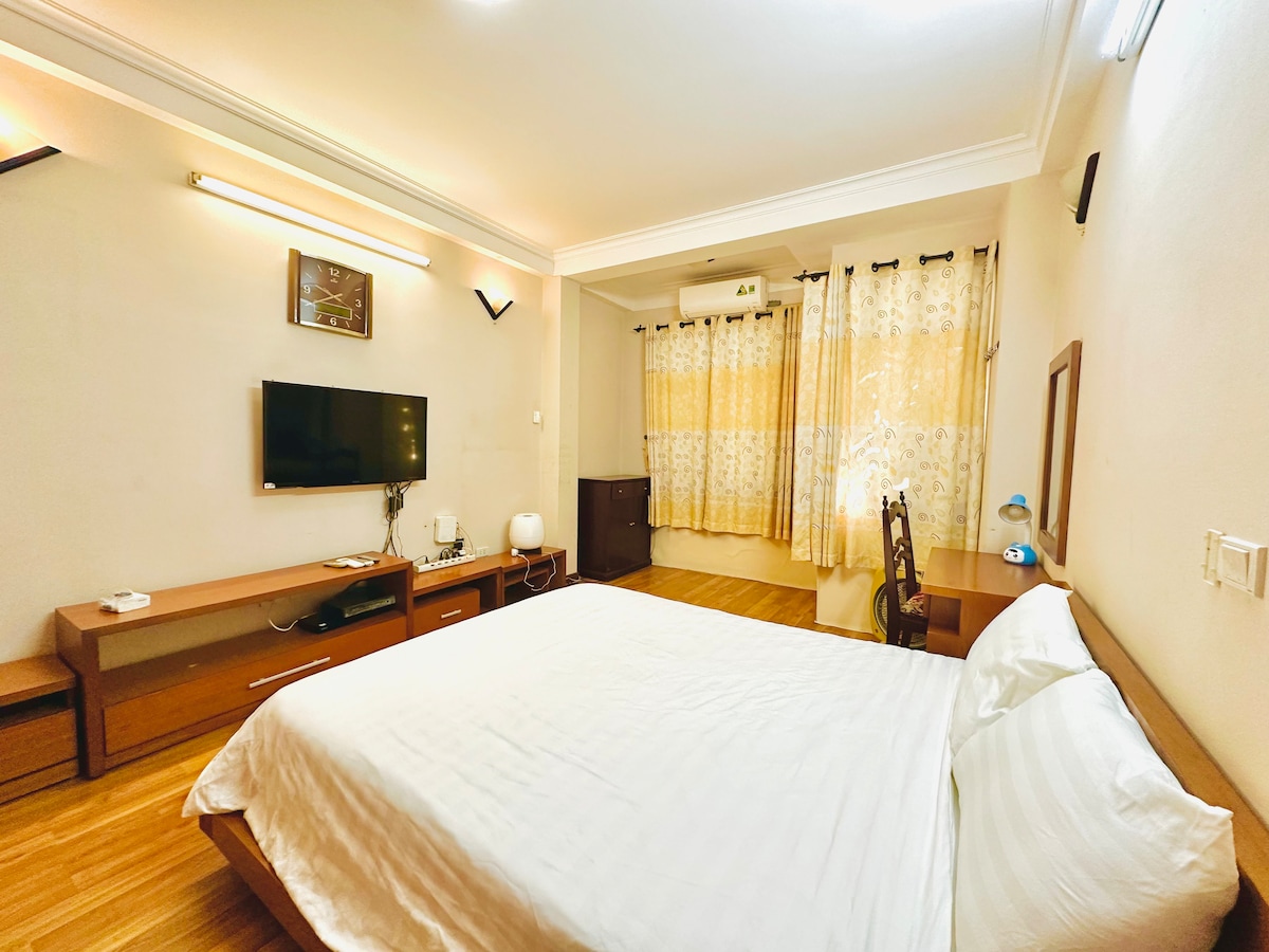Ce studio confortable, propre et spacieux de 30 m2 avec 1 chambre, 1 petite cuisine, 1 espace de travail pour ordinateur portable et 1 salle de bain privée attenante, est situé dans une petite ruelle, à seulement 50 m de la route principale. Il dispose de 2 grandes fenêtres, de sorte que les chambres sont naturellement lumineuses et aérées. Le studio est un choix idéal pour les groupes de 1 à 2 personnes. Il est situé dans un emplacement central avec le quartier local, très proche des grands lacs, des parcs, des arrêts de bus, des supermarchés, des restaurants…, et surtout à seulement 3 km du vieux quartier de Hanoï.
