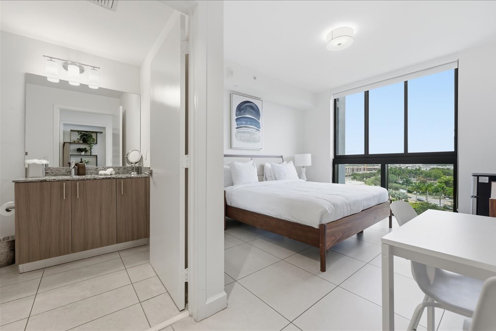 Welcome to this private luxury room with independent entrance, located in an upscale condominium in the heart of Downtown Doral. Enjoy a beautiful pool and wet areas, a privileged location right across from the Downtown park, and walkable access to supermarkets, restaurants, nightlife bars, and boutiques. The perfect place to relax and experience the best of the city.