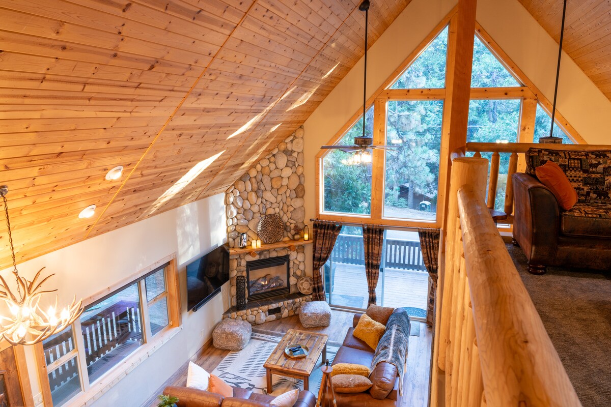 Profitez des terrasses tranquilles et du spa avec vue sur le canyon et la forêt, le spa et les cheminées dans notre chalet isolé de 3 niveaux dans la forêt nationale de Stanislaus. Beaucoup d'espace pour les amis et la famille ! Situé à 7 miles de Murphys et Arnold et à proximité des vignobles, du parc d'État de Big Trees, de la station de ski Bear Valley, du lac Alpin et de la rivière Stanislaus. Notre maison a des activités amusantes, y compris des traîneaux à neige, des bâtons de pêche, du air hockey de qualité arcade, des fléchettes et de nombreux jeux !