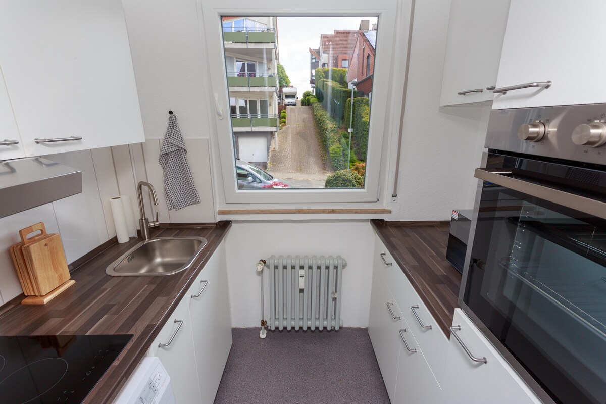 Appartement indépendant - central - calme - pour des séjours courts et un peu plus longs à Schwerte an der Ruhr. Idéal pour jusqu'à 4 personnes. Convient également pour 6 personnes. À distance de marche des endroits importants : - Centre 5-10 - Piste cyclable 5-10 - Centre culturel Rohrmeisterei 10-15 - Gare de Schwerte 10-15 - Hôpital Marienkrankenhaus 3 Les trains mettent 20 minutes pour arriver à la gare centrale de Dortmund, 15 minutes pour arriver au stade BVB de Dortmund/aux Westfalenhallen. Schwerte est juste à côté de l'autoroute A 1 et A 45