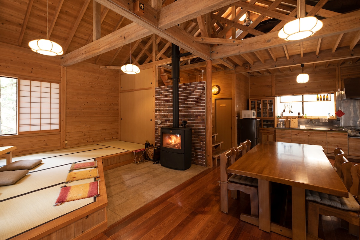 Le gîte est situé à 10 km de la gare du mont Fuji. Ce lodge a été construit avec du bois local et est entouré d'une forêt tranquille et d'un ruisseau qui babille. Le gîte est séparé du bâtiment adjacent, vous pouvez donc passer votre temps dans une atmosphère détendue. Le grand projecteur connecté au Wi-Fi comprend un son surround. Profitez d'un poêle à bois en hiver et de feux d'artifice portatifs en été. Des jeux gratuits comme Mölkky sont disponibles. Les options payantes comprennent des activités telles que des feux de camp, un barbecue et un sauna au bord d'un ruisseau.