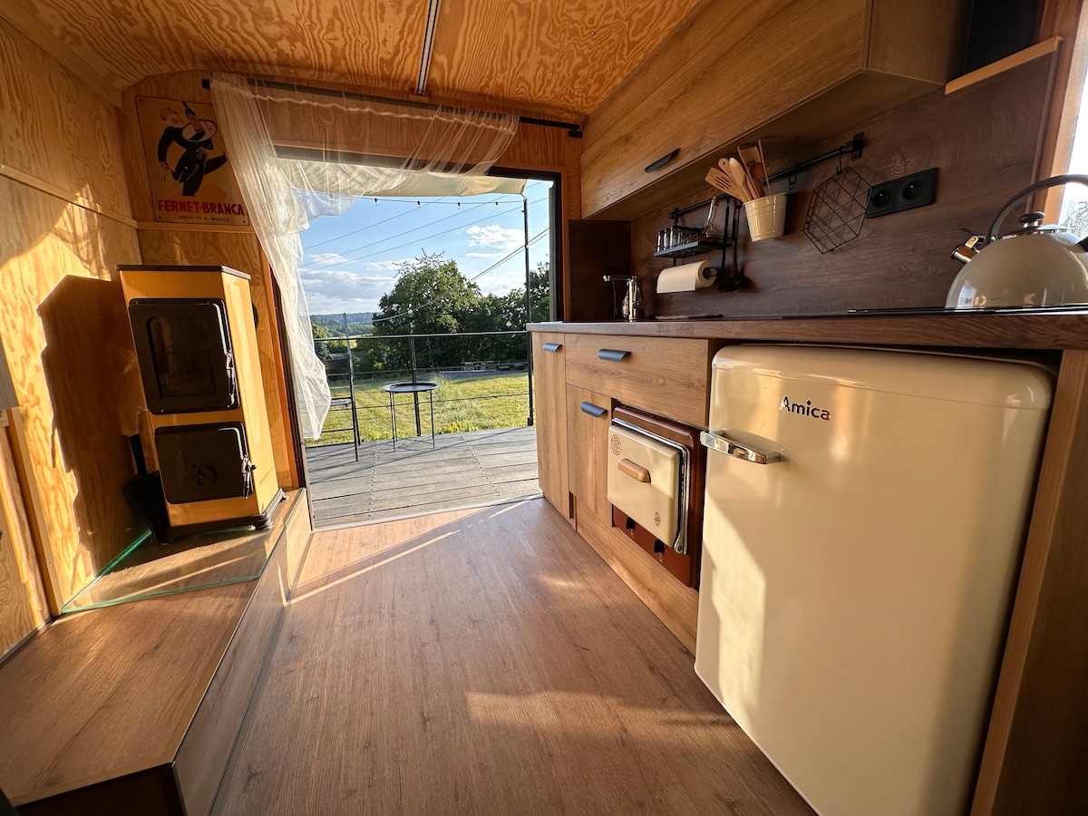 At the foot of the forests, where we rent a trailer, there is virgin tranquility and the tiny house underlines the poetic atmosphere of the region. In such places, the first thing a person sees after waking up in the morning is a deer right outside the window or, at night, a sky full of stars overhead. We manufacture wooden caravans, which strive to contribute to the protection of nature with their sustainable approach and by bringing man back to nature. Our accommodation is part of the ZEVVL®