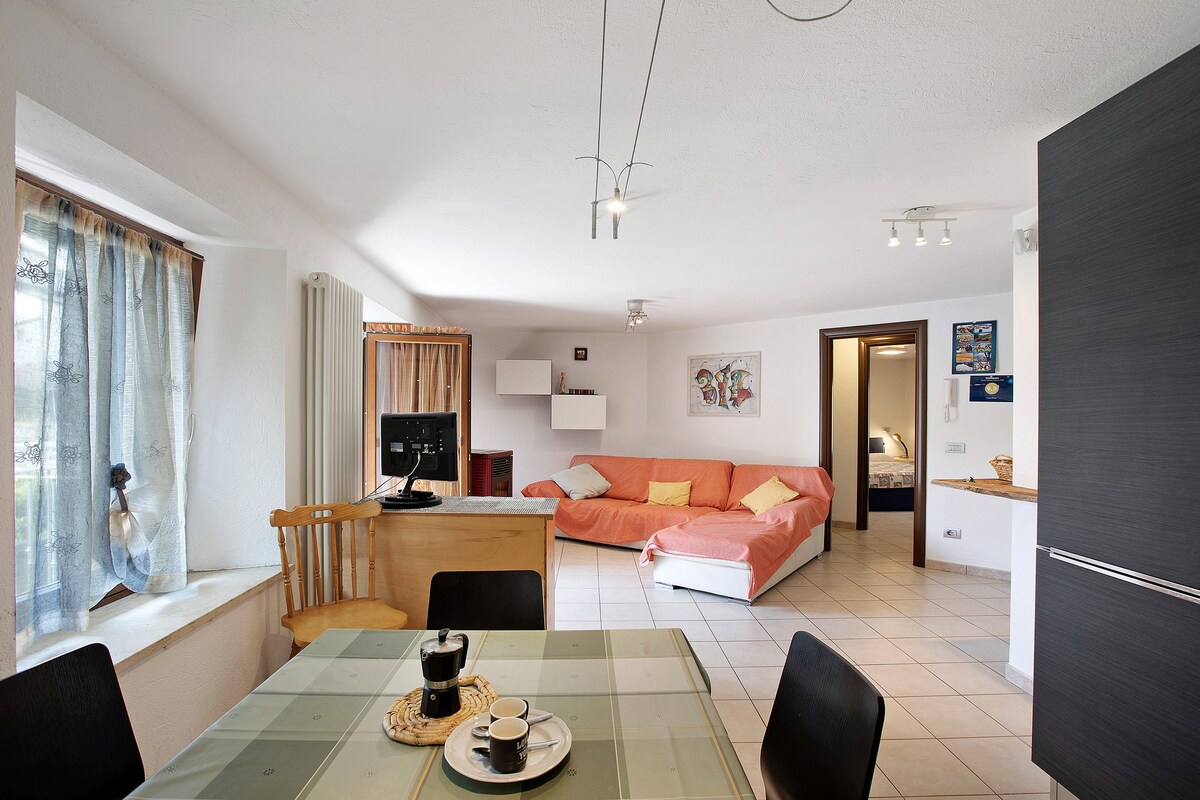 Studio avec grotte situé au rez-de-chaussée d’une jolie maison indépendante de montagne. Nouveau mobilier de style rustique. Cuisine équipée avec cuisinière à gaz, réfrigérateur, four, lave-vaisselle et tous les ustensiles nécessaires pour manger et cuisiner. Le salon est équipé d’une télévision à écran LED et d’un lit double. Légèrement isolé, il y a un lit simple avec une armoire. Salle de bain avec douche pourvue d'une fenêtre. Sur demande sont disponibles gratuitement : lit bébé (0-3 ans) et chaise haute. Pas d’animaux.