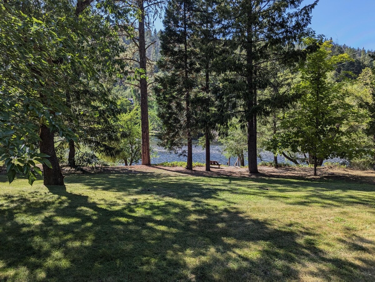 Bienvenue dans la cabane « Quad-P », située sur 3 acres le long de 400 pieds de la rivière Trinity. Près de Douglas City, en Californie, le chalet dispose d'une cuisine complète, d'une salle à manger, d'un grand salon et d'une généreuse terrasse privée avec une vue incroyable sur la rivière et les montagnes. Trois chambres avec lits king ou queen et deux très petites chambres avec lits jumeaux, trois salles de bains complètes, pour dormir confortablement à 6. Internet haut débit Starlink et utilisation du téléphone permettent le travail à distance. Chauffages et climatiseurs électriques.