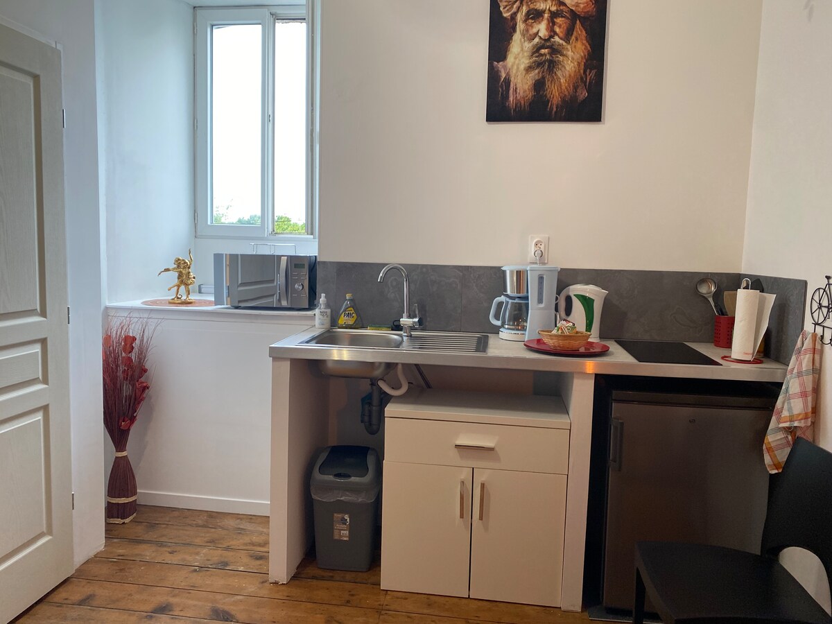Loft entièrement rénové dans un style résolument industriel. Situé dans notre maison, vous y accédez par le couloir d'entrée commun tout en étant indépendant du reste de l'habitation. Le logement comprend une cuisine, une très grande chambre avec un lit king size de 1m80, un salon, une salle de bain privée avec douche à l'italienne et l'air conditionné. Accès possible à notre terrasse et jardin. Le magnifique Jacuzzi 5 places flambant neuf est en option au prix de 20€ peignoirs fournis.