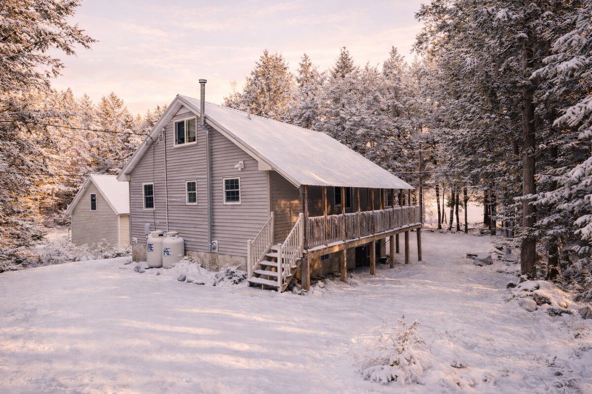 Évadez-vous sous les étoiles. Ce chalet est juste sur le sentier ITS, niché au milieu d'un petit terrain légèrement boisé dans un cadre rural. Profitez du foyer, apportez vos motoneiges, vélos et remorques. L'espace est confortable avec une télévision de 55" et une petite cuisine pour préparer vos repas. La chambre est dans le loft avec une passerelle s'ouvrant sur un balcon. Profitez d'un accès à des activités de plein air toute l'année car vous êtes à proximité de la région de Katahdin Iron Works/Jo Mary et des lacs Sebec et Schoodic.
