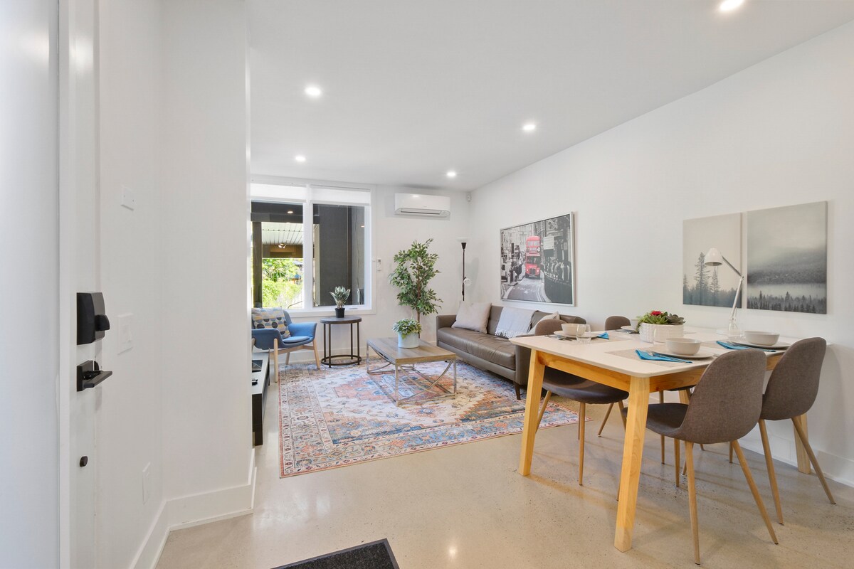 Séjournez dans notre appartement de deux étages magnifiquement rénové dans l'un des meilleurs quartiers d'Ottawa ! Cet élégant logement dispose d'une cuisine ouverte et d'un salon, ainsi que d'une chambre confortable avec un lit Queen Size, parfait pour se détendre après avoir exploré. À quelques pas de Richmond Road à Westboro, vous trouverez des cafés branchés, des boulangeries artisanales, des restaurants et des boutiques. Les épiceries, les salles de sport, les pharmacies et la LCBO sont tous accessibles à pied et à 6 minutes en voiture de l'hôpital Civic.