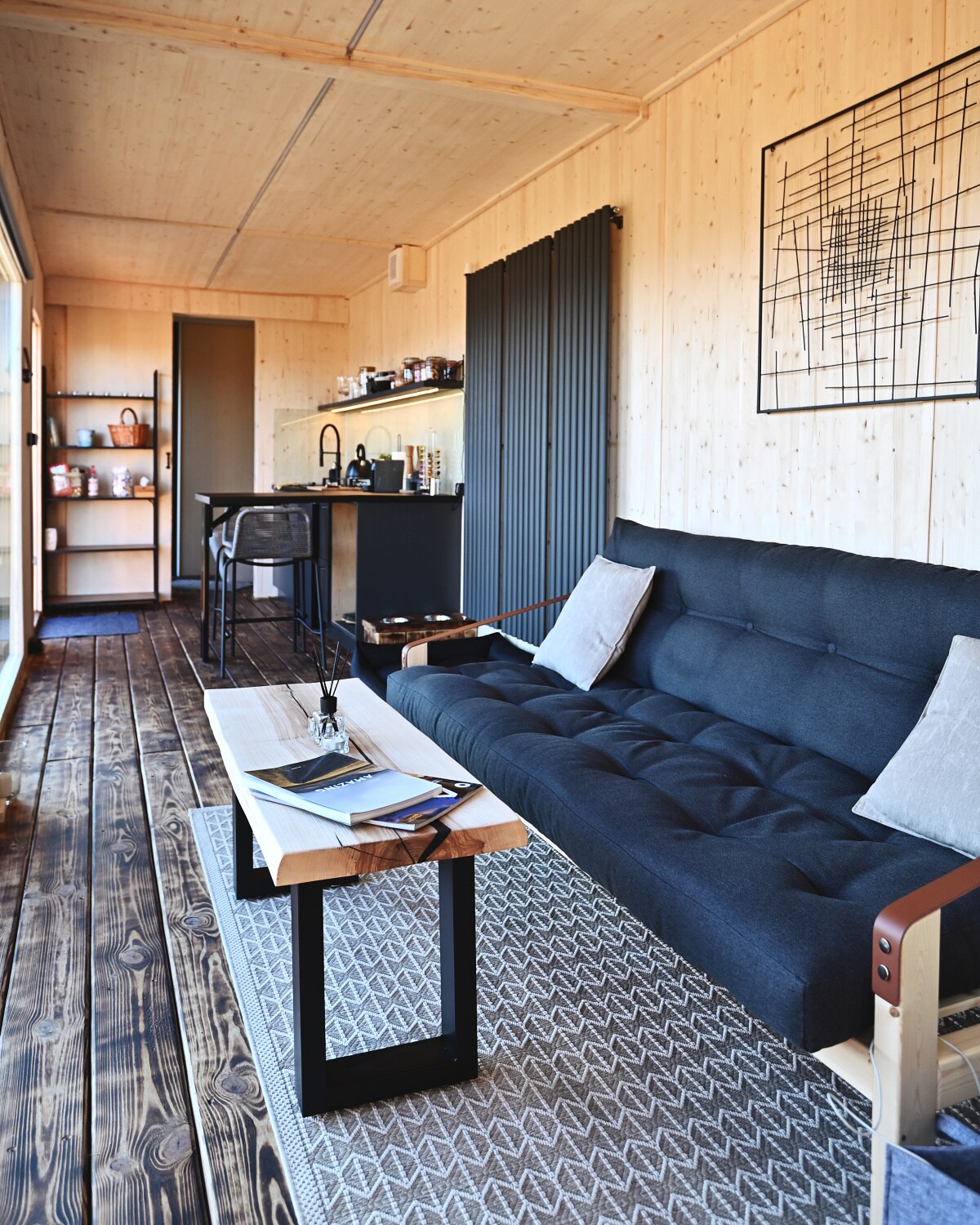 Hébergement au design intelligent. Une boutique en libre-service avec des boissons alcoolisées et non alcoolisées, des confitures maison et des produits d'artisans locaux. Nous n'offrons pas seulement des murs blancs, un lit et une télévision pour passer la nuit. Nous fournissons un hébergement qui respecte votre vie privée, où vous vous sentirez comme chez vous. Écoutez votre propre musique à partir de votre téléphone sur le haut-parleur Bluetooth BOSE, regardez vos films préférés sur la télévision connectée ou l'iPad. Détendez-vous dans le sauna privé ou sur la terrasse. Profitez !