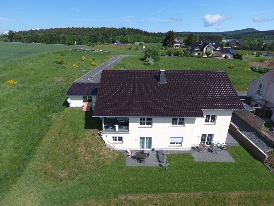 La maison en bois est adaptée aux familles et aux amis jusqu'à 10 adultes. Le logement est situé entre les « Maare » (lacs volcaniques) dans l'Eifel volcanique près du Nürburgring et offre : sauna pour 5 personnes, 2 jardins d'hiver, un avec une piscine gonflable, jacuzzi extérieur chauffé au bois, foyer, aire de jeux, trampoline, équipement de fitness dans la maison, baby-foot, tennis de table dans le grand garage double, Netflix, boîtier mural pour voitures électriques. 2 lits de bébé et 2 chaises hautes sont disponibles.