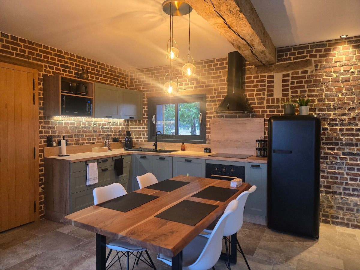 Charmant four à pain ancien en colombages, situé en bord de ruisseau il se compose de : - Salon avec un poêle à bois, - Cuisine, - A l’étage : -salle de douche/WC accessible par une échelle de meunier (voir photos), -chambre avec un lit 160x200 avec vue sur le ruisseau, accessible par une échelle de meunier (voir photos), Chambre et salle de bain ne communiquent pas. Salon de jardin, BBQ, parking privé, bois de chauffage inclus Note autre gite, la Maison de pierres, est à 100m