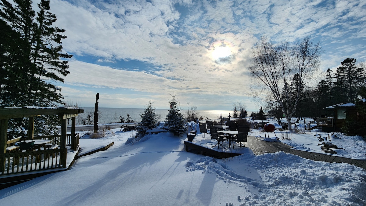 Condo de deux chambres/deux salles de bain avec une vue imprenable sur le lac Supérieur ! La chambre principale dispose d'un lit king, d'une cheminée et d'un bain à remous. La deuxième chambre dispose de deux lits jumeaux. La grande cuisine est entièrement équipée et comprend tous les outils dont vous aurez besoin pour préparer vos repas. Il y a aussi un patio avec un barbecue électrique. Les équipements du complexe hôtelier disponibles comprennent une piscine intérieure, un jacuzzi intérieur/extérieur, un sauna, une salle d'entraînement et une buanderie.