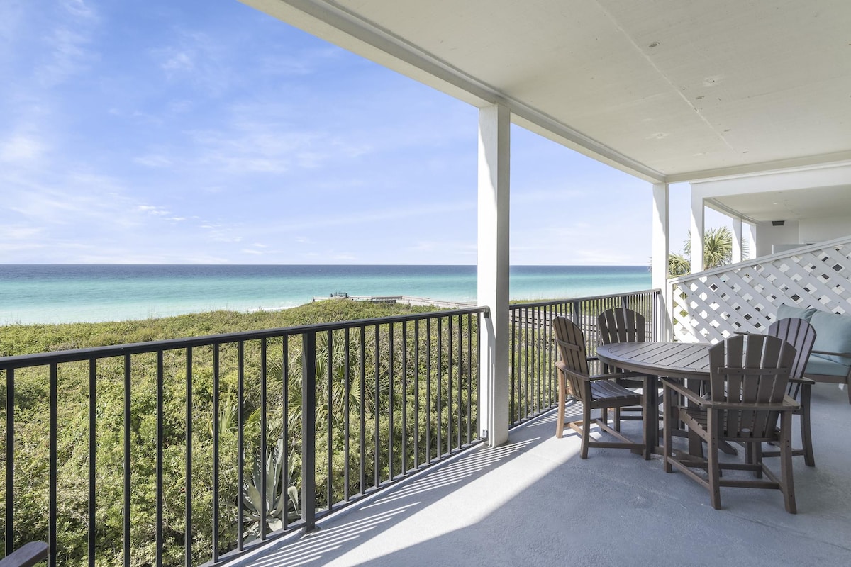 Bienvenue dans notre petit coin de paradis à Seagrove ! Notre condo en bord de mer au 2e étage offre une vue imprenable sur l'océan, un accès privé à la plage, un parking gratuit, des chaises de plage, des jouets et un parasol et un intérieur entièrement rénové pour un séjour confortable et relaxant. Détendez-vous dans l'espace de vie ouvert, cuisinez dans la cuisine entièrement équipée et profitez du soleil sur votre balcon privé. Avec un accès direct à une plage privée, vous pourrez profiter de journées sans fin de sable, de mer et de soleil !