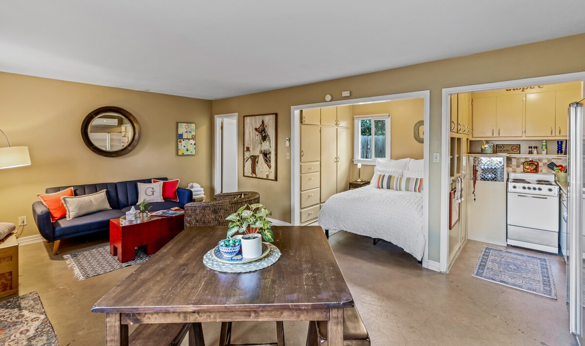 Une maison d'hôtes fraîche et aérée située à un mile du centre-ville de Boise. Détendez-vous dans notre baignoire sur pieds après une longue journée d'exploration du parc de whitewater à proximité, des contreforts, de la ceinture verte ou du paysage du centre-ville. Cuisinez dans la cuisine ou marchez jusqu'aux restaurants à proximité pour vos repas. Sirotez votre café du matin sur le patio pendant que vous planifiez votre prochaine aventure. Vous dormirez profondément dans le lit King Size confortable. Nous espérons que vous apprécierez Boise, mais il sera difficile de quitter votre sanctuaire au 26th Street Studio.