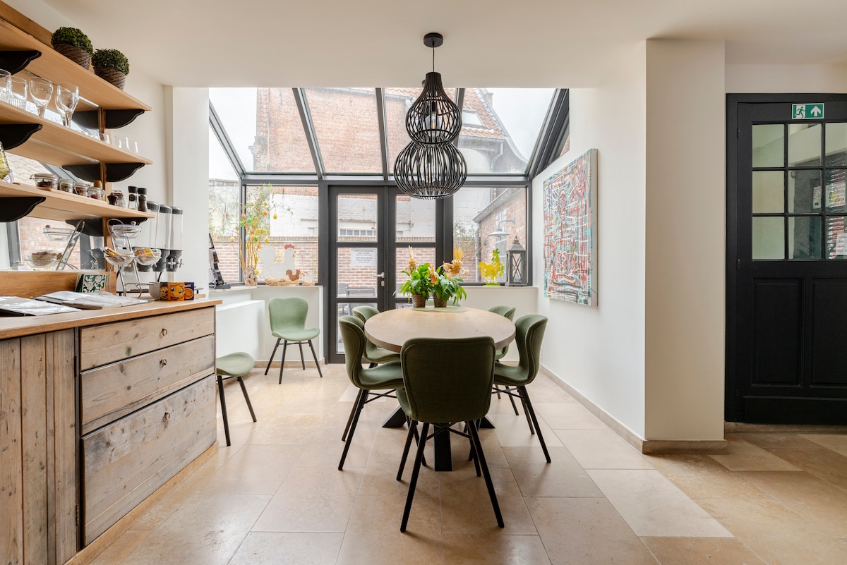 Séjournez dans une spacieuse chambre d’hôtes a une maison du XVIIIe siècle d’une artiste en lettrage , au cœur de Bruges historique, à deux pas du Minnewater, du Beffroi, des canaux et musées. Le lit confortable et de qualité garantit un bon sommeil. Profitez d’un petit-déjeuner traditionnel fait maison et d’une salle de bain luxueuse partagée uniquement avec l’hôte, avec baignoire design et douche à l’italienne, les invités sont prioritaires. J’habite à l’étage et mon atelier/expo est en bas.
