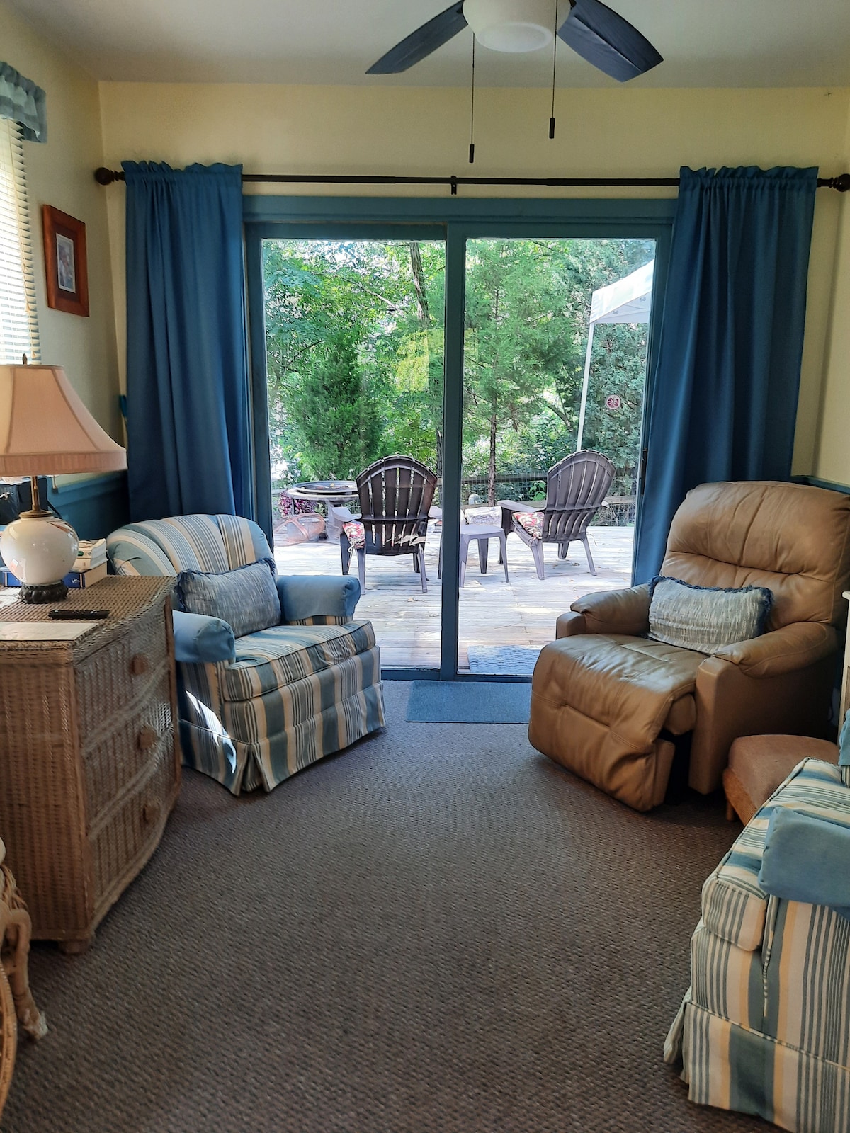 Un chalet d'une chambre pouvant accueillir 4 personnes, niché à flanc de colline au sommet de la zone humide. Idéal pour l'observation des oiseaux ! Situé sur une propriété joliment aménagée à distance de marche de Lecount Hollow Beach. La chambre dispose d'un lit Queen Size et il y a un canapé-lit Queen Size et un canapé-lit simple dans le sous-sol fini. Vous y trouverez également un studio pour deux personnes. Le nom de l'annonce est « Comfortable Studio Apartment ».(Les animaux de compagnie sont autorisés dans le studio.)