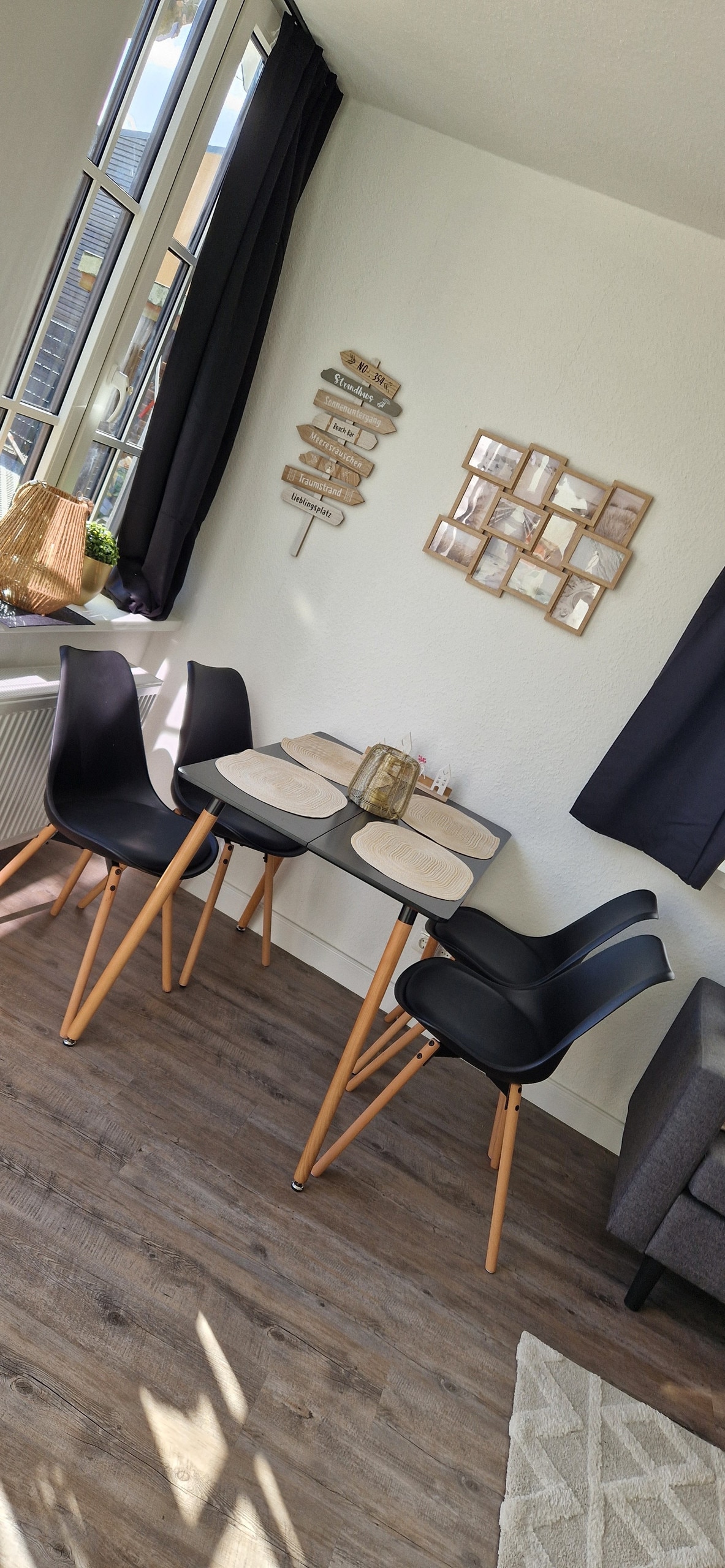 Joli appartement de vacances à Eckernförde sur la mer Baltique - à moins de 5 minutes à pied de la plage, du port ou de la petite ville. 3 chambres, cuisine, salle de bain réparties sur 40 mètres carrés. Entièrement équipé, joliment décoré, avec vue sur les toits et les cris des mouettes. Une hotte aspirante permet de faire cuire le poisson frais, dans l'arrière-cour, il y a une possibilité couverte de garer les vélos et de suspendre le linge. Si d'autres invités veulent rester : les fauteuils sont des fauteuils-lits.