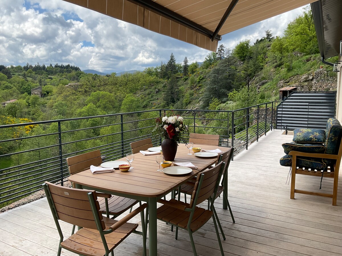 Au cœur du Parc Naturel du Pilat, proche Ardèche, avec accès direct aux chemins de randonnée. Logement neuf indépendant avec spa privé, intégré, un lit queen size, table de massage, une terrasse accessible depuis le spa et offrant une vue sur les Alpes et le Mont Blanc par temps clair. Une grande terrasse à l'étage. Parking à l'entrée. Tout le confort nécessaire pour de belles vacances dans un cadre verdoyant et privilégié. 30 Min de l'A7, 1h de Lyon. Linge de lit, serviettes, peignoirs fournis.