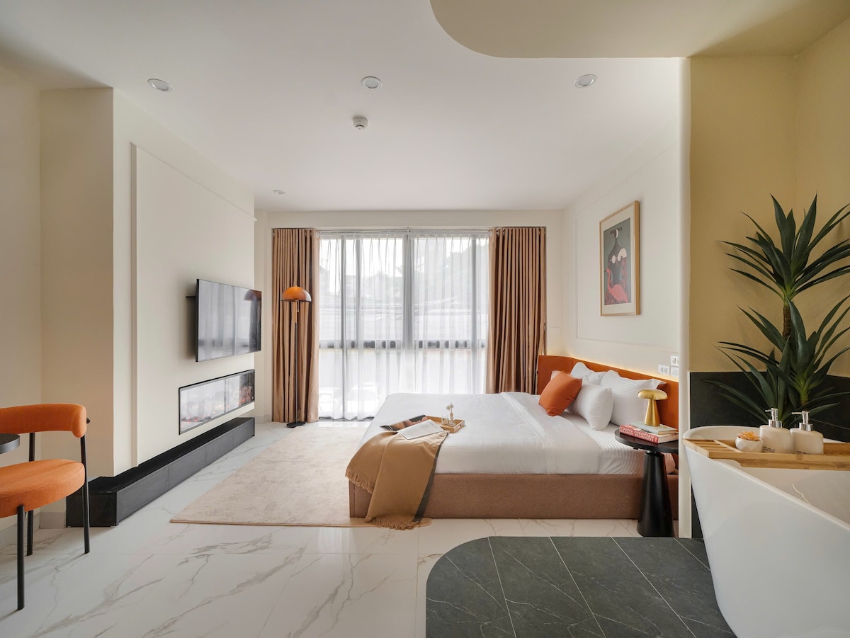 Superbe appartement dans un emplacement très central de la ville avec des meubles modernes et luxueux. Nous utilisons un très beau système d'éclairage et vous vous sentirez vraiment à l'aise ici. L'appartement dispose de grandes fenêtres avec lumière naturelle et d'une cheminée très romantique. Nous avons un café et un bar ouverts jour et nuit. Ce quartier regroupe également de nombreux restaurants délicieux ainsi que des sites célèbres, à seulement quelques minutes à pied. Vivez votre voyage ici.