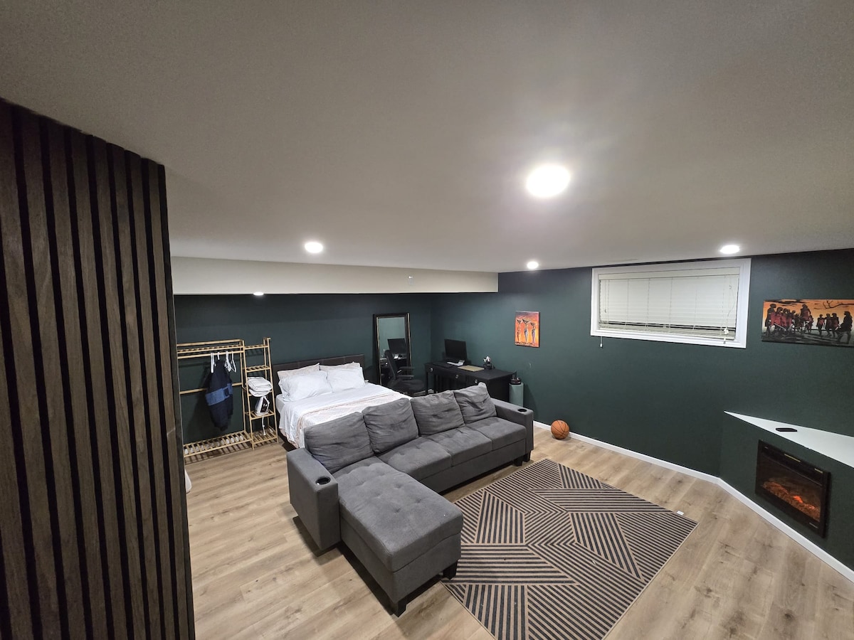 Bienvenue dans votre studio confortable et privé. Situé dans un espace calme et inférieur avec des murs isolés, vous profiterez de nuits reposantes et d'une intimité totale. La suite comprend un lit confortable, un espace de travail, un mini-réfrigérateur, un système de divertissement et un micro-ondes, parfait pour des séjours courts ou plus longs. À seulement 10 minutes à pied de la ligne 2 du métro et à quelques pas de l'arrêt de bus le plus proche. Entouré de superbes restaurants locaux, de boutiques, de parcs et de sentiers pittoresques pour les amoureux de la nature.