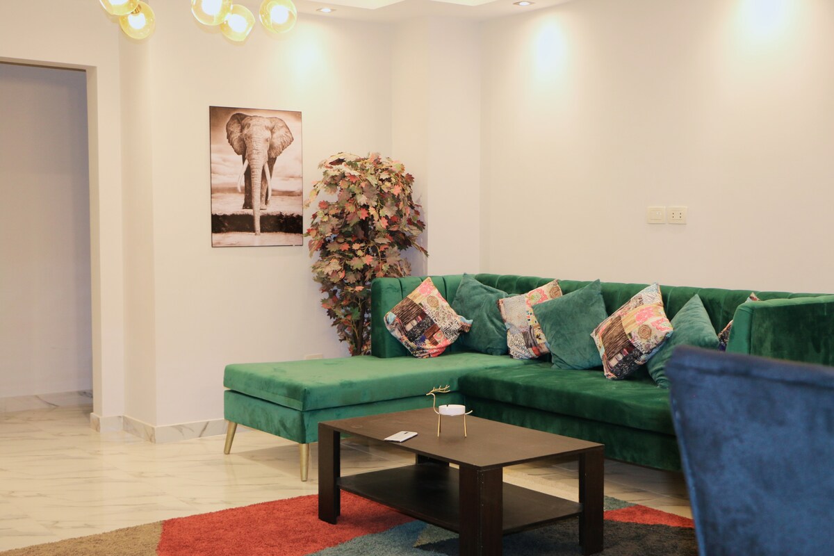 ** Welcome to Turquoise Haven Cairo. Your family will be close to everything when you stay at this totally new, centrally located apartment. Perfectly situated beside supermarkets, ATMs, restaurants, and malls, this home offers brand-new furnishings, modern appliances, and a stylish turquoise design that creates a fresh, relaxing atmosphere. Designed for both comfort and convenience, it’s the perfect base for your Cairo stay. # Notice: We don’t accept guests with kids below 8 years old.