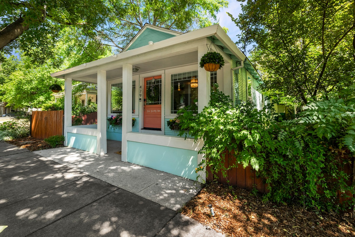 This special place is close to everything, making it easy to plan your visit. Located 1 block from Main St on the parade route and 1 block from the summer Farmer’s Market, this upstairs unit is located in a building that was built in 1906 as evidenced by its high ceilings and unique trim. New kitchen, new bathroom, new paint, new flooring, and new furniture and decor by local business Amazing Finds. Earplugs are provided because you might hear the bustle of downtown and the train 5 blocks away.