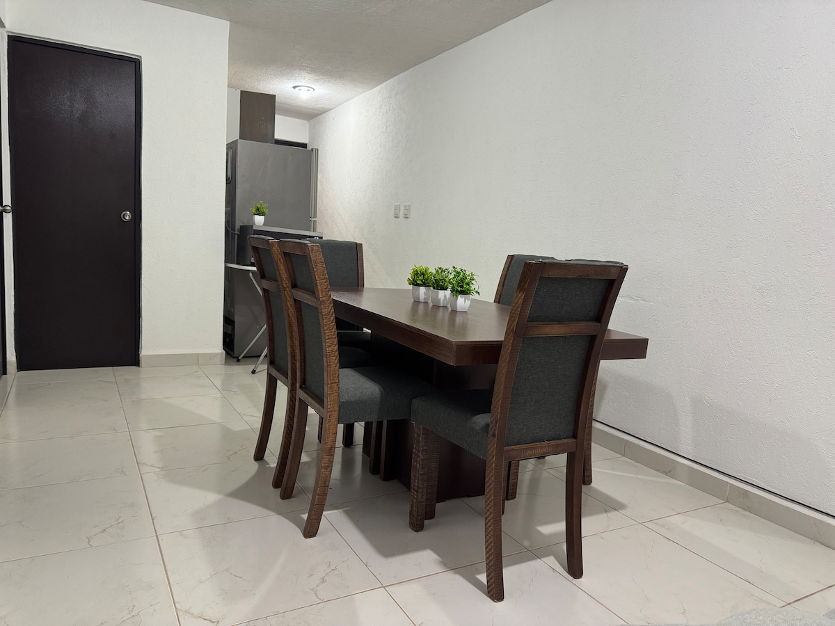 Microdepartamento compacto y funcional, diseñado para 1 o 2 personas que buscan una estancia privada y práctica. Se encuentra en planta baja y cuenta con acceso independiente directamente desde la calle y chapa inteligente con contraseña personalizada. Está ubicado en una zona popular y tradicional, con vida local y comercios a pocos pasos, no esta en Fracc. privado. No es una zona residencial de lujo, por lo que es ideal para huéspedes que priorizan funcionalidad, precio y conectividad.