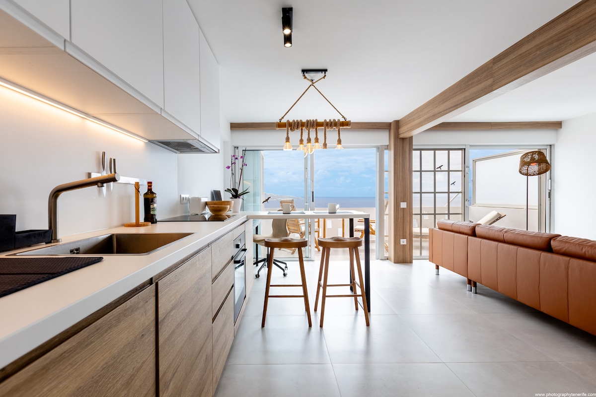 Réveillez-vous avec une vue imprenable sur l'océan depuis votre terrasse privée ensoleillée dans ce magnifique appartement en bord de mer. Récemment rénové et soigneusement conçu, c'est votre paradis parfait à Tenerife. Le logement Notre appartement moderne d'une chambre est exceptionnellement lumineux et conçu pour un confort et une détente ultimes. Le point culminant est la vaste terrasse de 24 m², avec un ensemble de salle à manger, où vous pourrez profiter des repas avec une vue spectaculaire sur la mer et la montagne.