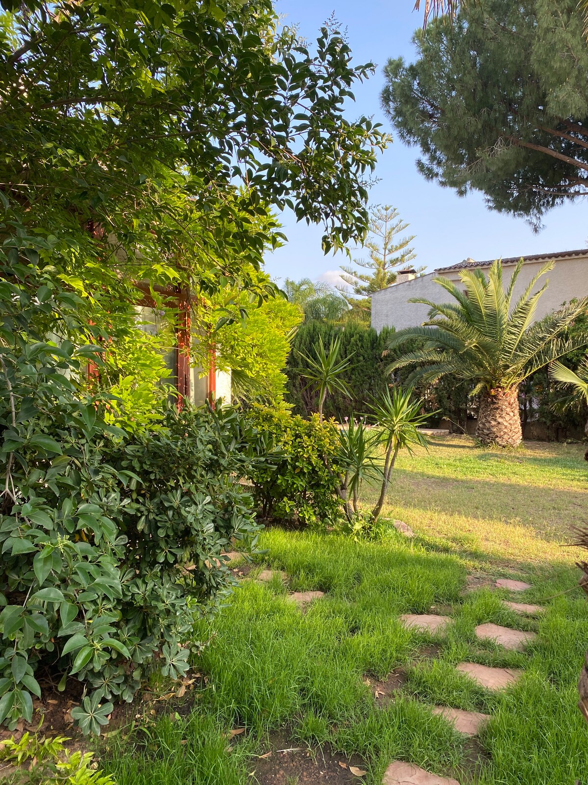 Rez-de-chaussée/appartement dans un chalet unifamilial, facile d'accès pour les enfants et les adultes. Le chalet est entouré de cyprès sur un terrain de 1000m2. Un jardin avec pelouse, arbres, piscine, barbecue avec pergola en bois. Sauna et salle de sport dans le jardin. Urbanisation très calme, il est à seulement 15 min. de la ville de Valence, 15 min. de l'aéroport. Centre commercial El Osito à peine 5 minutes, supermarchés Aldi, Lidl, Mercadona à 3 min. en voiture. Un endroit parfait pour profiter en famille.