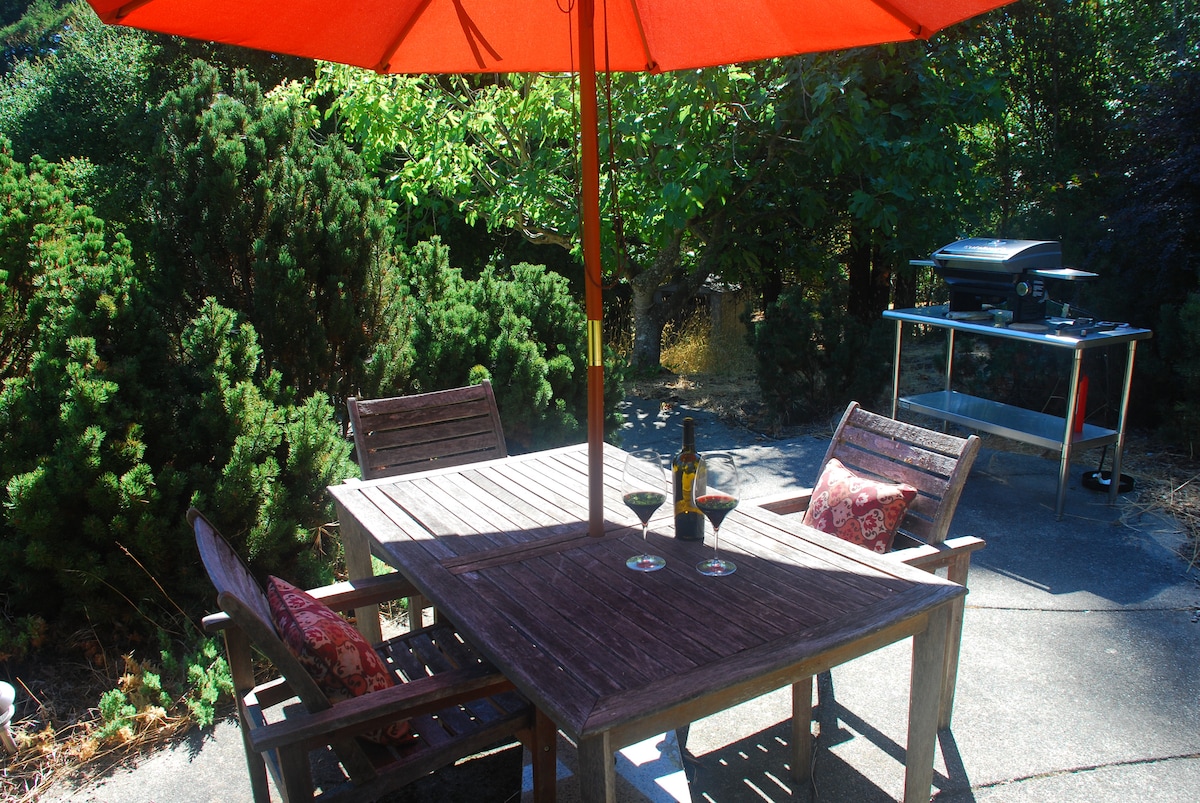 Sonoma Studio est décoré d'œuvres d'art et de tapis orientaux. Vue sur les montagnes et la vallée. Kitchenette et barbecue au charbon de bois et traiger pour votre usage sur le patio. Café et thé, flocons d'avoine ou granola fournis pour votre premier matin. Entièrement approvisionné pour une cuisine légère. Télévision connectée avec tous les services de streaming. Haut-parleur Sonos dans la chambre. Purificateur d'air Molekule. Propre et confortable et situé au cœur de la vallée. À dix minutes en voiture de Sonoma Square.