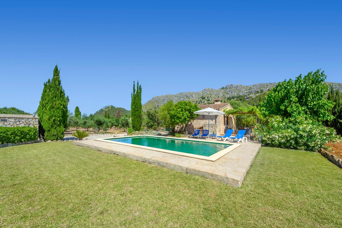 Bonita casa con piscina rodeada de vegetación ideal para familias, dos dormitorios con A/C, dos baños, salón comedor, cocina completamente equipada Wifi gratis, Parking privado, zona muy tranquila a cinco minutos de la Bahía de Pollensa y 10 minutos de Puerto de Pollensa y Pollensa. Piscina climatizada bajo petición tiene un coste extra.