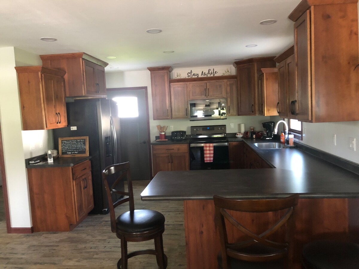 Chalet de 2 chambres avec lits Queen Size et canapé-lit Queen Size avec matelas confortable. Si vous voulez planter une tente dans la cour, n'hésitez pas. Grand espace de vie ouvert avec foyer. 170 acres de propriété privée avec service de téléphonie mobile. Niché à la campagne sur une route sans issue. À un mile de la pêche à la truite, de la chasse, de la randonnée, de l'équitation et de 8 500 acres de la forêt d'État de Yellow River.