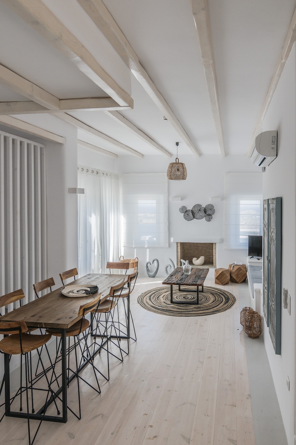 Loveliest view 360" we are located 7 min stair-walk from the center of the town or 2min from the road with a car , with private big balcony that gives you space to stay out and enjoy our beautiful sea view and garden. A projector is also available for cozy evenings to turn the living room into a comfortable home cinema — perfect for relaxed holiday movie nights ! Wifi cycladic arcitecture fireplace Parking