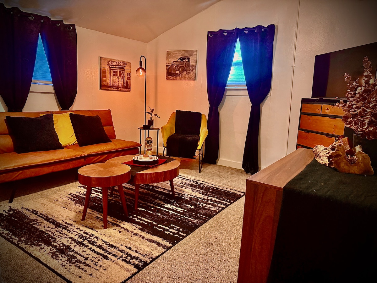 Le repaire de Calamity Jane Une escapade historique au centre-ville Remontez le temps et vivez comme un hors-la-loi au repaire de Calamity Jane. Un séjour unique au cœur du centre-ville d'Elko, au Nevada ! Niché à l'intérieur de l'hôtel historique West, cet appartement de charme allie le caractère du Far West au confort moderne. Caractéristiques de la planque de CJ : • Un espace ouvert spacieux avec kitchenette, salle à manger et espaces de vie/de couchage • Une salle de bain complète privée • Deux canapés confortables de la marque Koala qui se déploient avec des sacs de couchage en mousse recouverts de toile