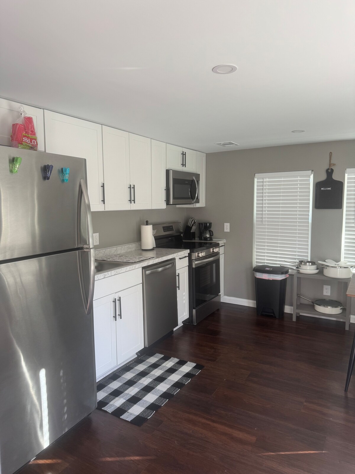 Relax with the whole family at this peaceful place to stay. Home sleeps 6 with two beds, two baths and a pull out bed in the living room. Our large fully fenced in backyard is perfect for pets! Home is located within a 5 minute proximity to I-95, grocery stores, gas station and several local and popular restaurants. The backyard of the house is directly along I-95. Pooler, GA and Savannah, GA are short drives from this home. Perfect pit stop for everyone in your home away from home!